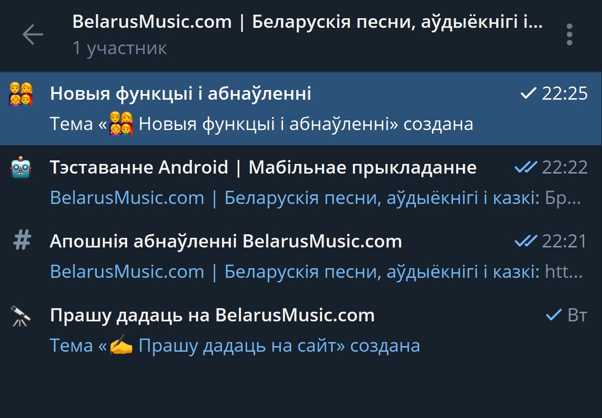 Сябры, прывітанне. Стварыў гурт у Тэлеграм. Разбіў змест па тэмах: навінкі, пытанні і г.д.